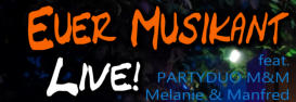 Euer Musikant vom Rhein als PARTYDUO M&MAls Alleinunterhalter und Duo das Ihren Gästen gefallen wird. Als PARTYDUO mit kölschen Tön, Schlager, Evergreens und bester Tanzmusik! Mit Liedern, die zum Mitsingen einladen. Viele erinnern sich bei der Stimme von „Euer Musikant“ an Udo Jürgens, denn hier kann man schon mal Original und Cover leicht verwechseln. Leise Töne beim Empfang oder Galaabend steigern sich zum absoluten Partyschlager wo es niemanden mehr auf seinem Platz hält. Das Ihr PARTYDUO M&M Manfred & Melanie - Euere Musikanten